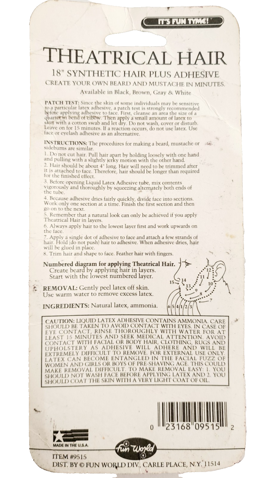 - 1980s Fun World Theatrical Hair Beard Mustache Adhesive Sealed Halloween E52