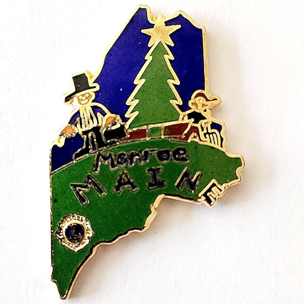 - 1980s Monroe Maine Lions Club State Pin Enamel Filled Fraternal Vintage 1 F6E