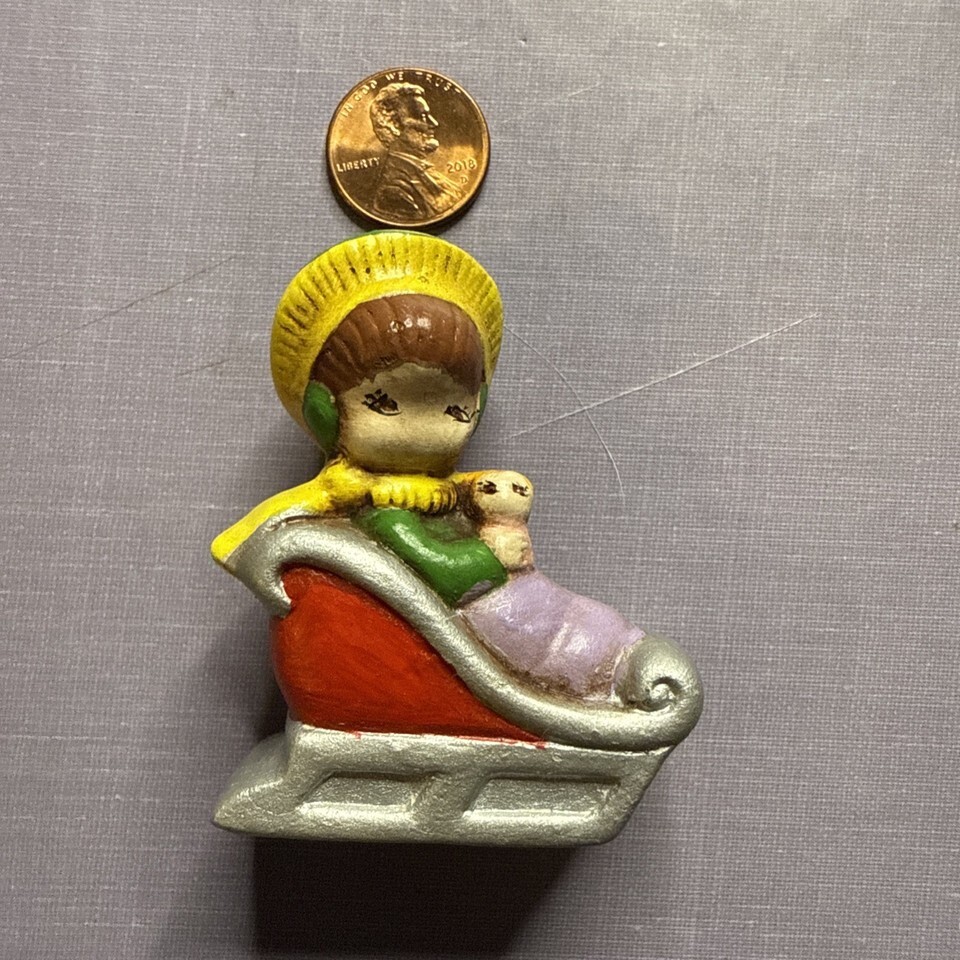 - 1981 Joan Walsh Anglund Christmas Ornament Girl in Sleigh Holiday Vintage