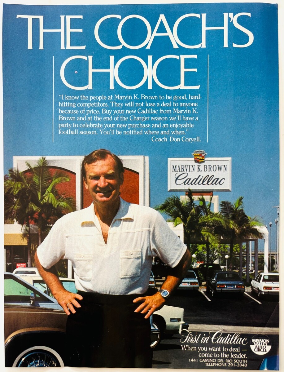 - 1981 Marvin Brow Car Dealership Advertisement VTG San Diego Don Coryell DWV11B