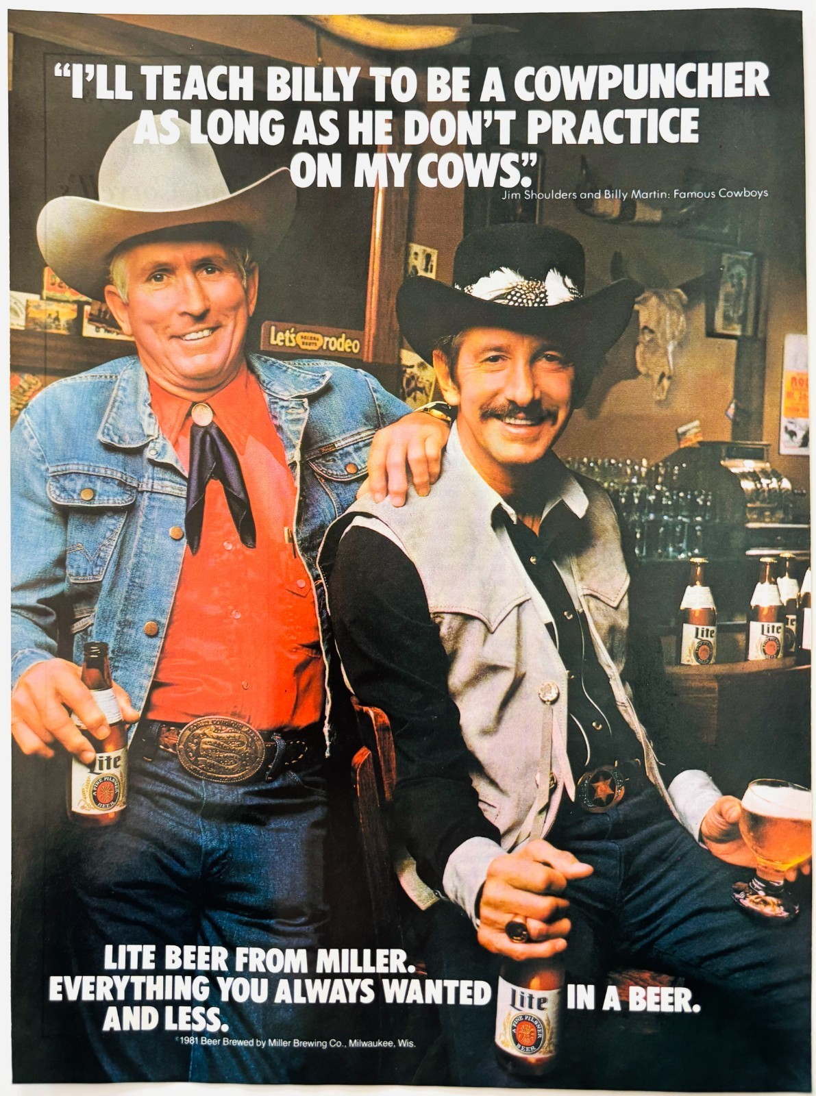 - 1981 Miller Lite Beer Advertisement Vintage Brewery Cowboys Cowpuncher DWV11A