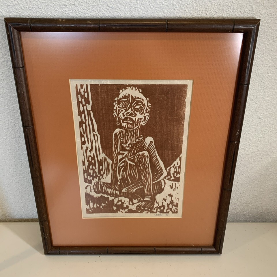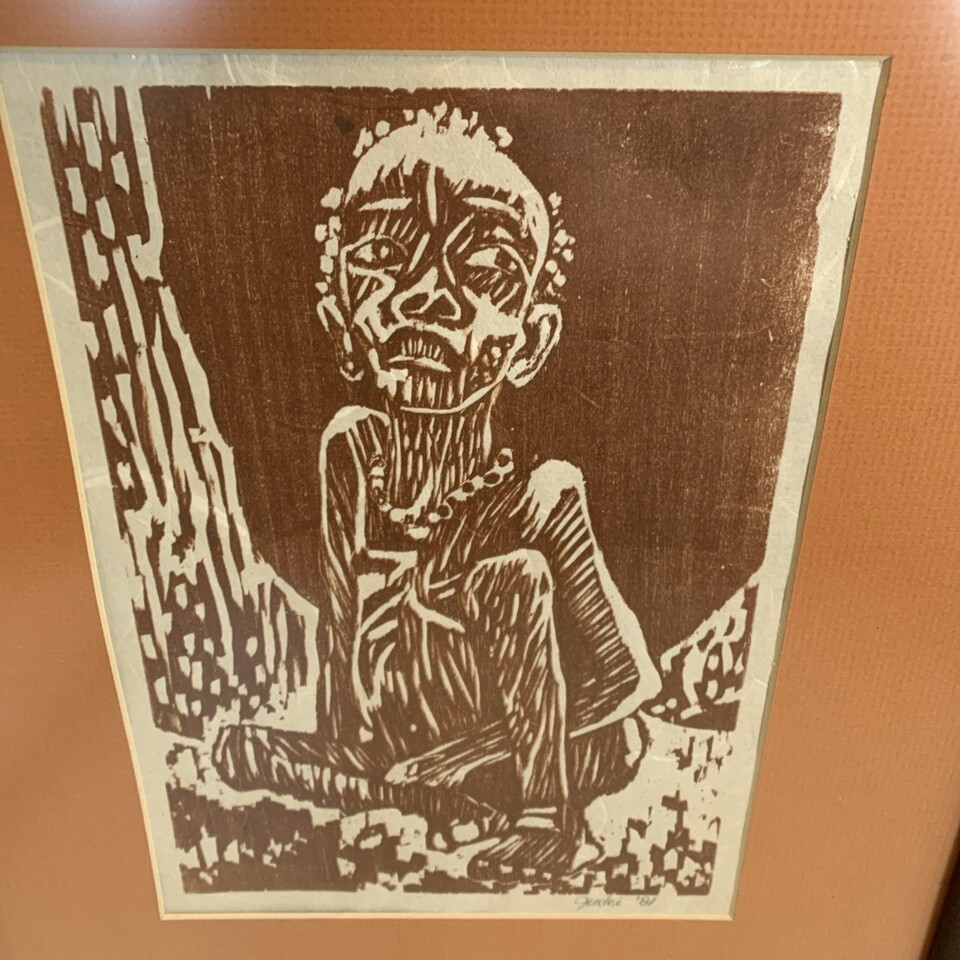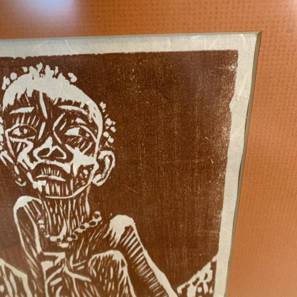 1981 Signed Linocut/Woodcut “Judei” Seated Figure – Hand-Pulled Relief Print