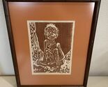- 1981 Signed Linocut/Woodcut “Judei” Seated Figure – Hand-Pulled Relief Print