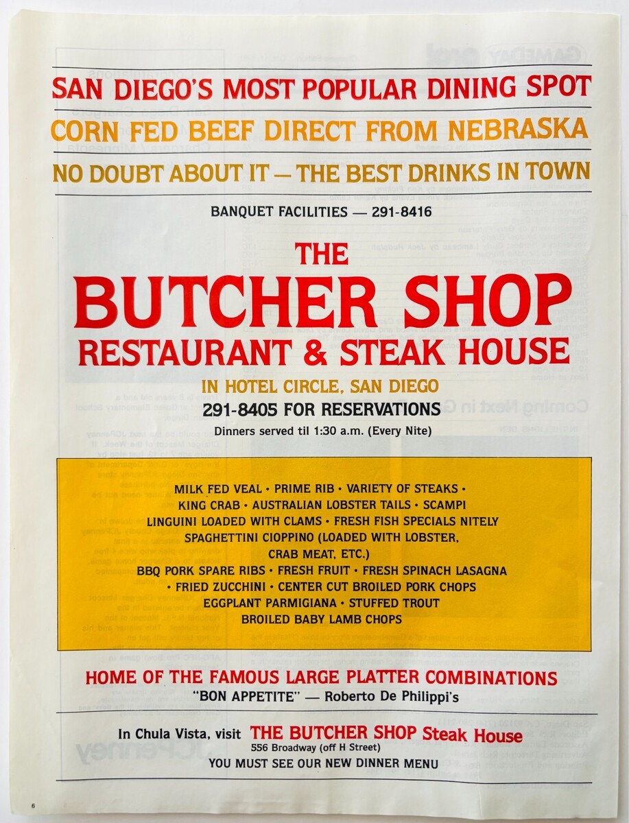 - 1981 The Butcher Shop Restaurant Advertisement Vintage San Diego Steak DWV11A