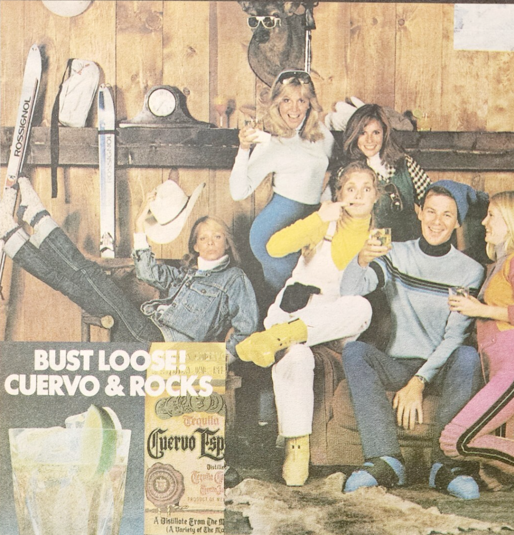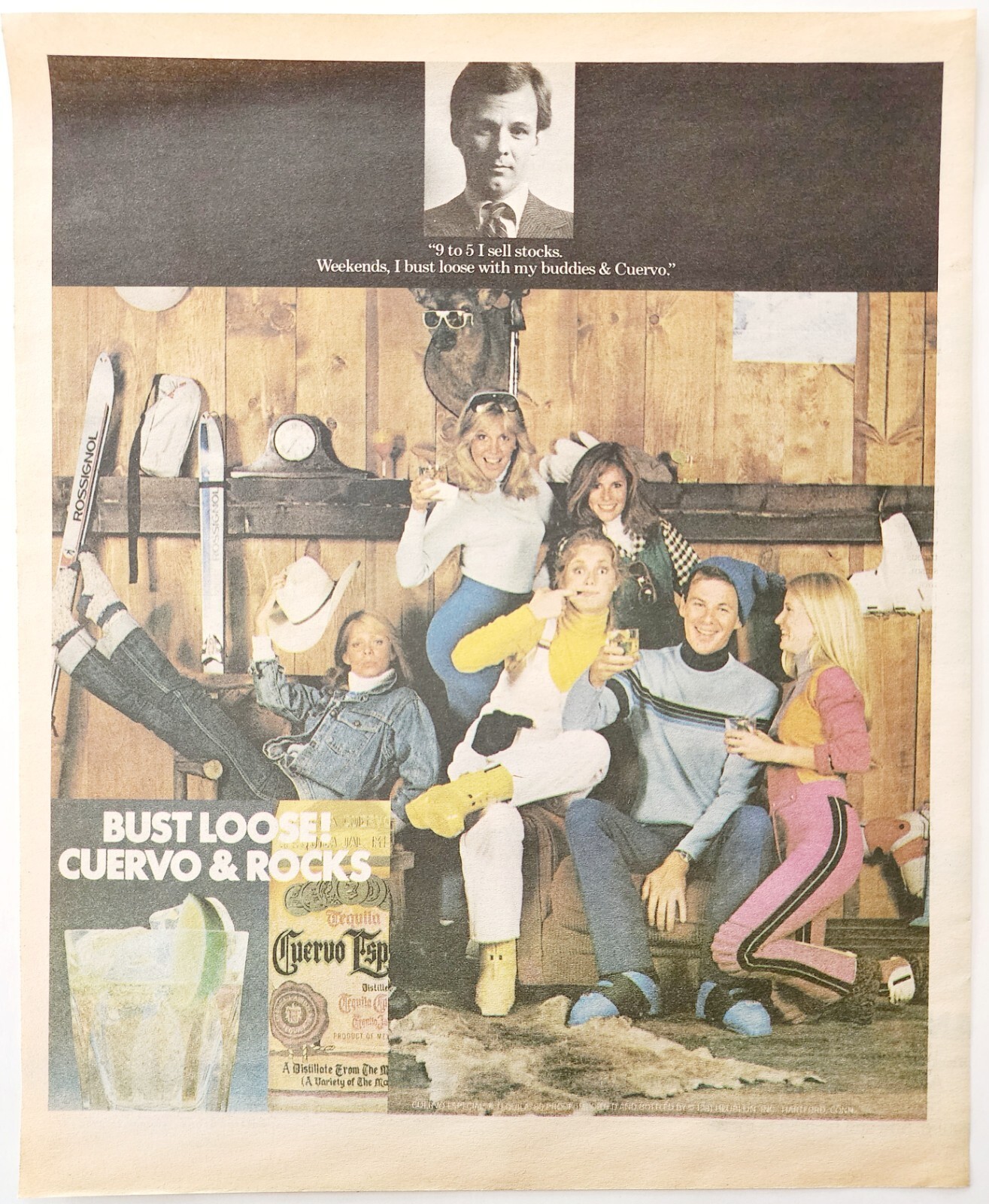 - 1982 Cuervo Tequila Advertisement Skiing Scene Distillery Vintage DWJJ13