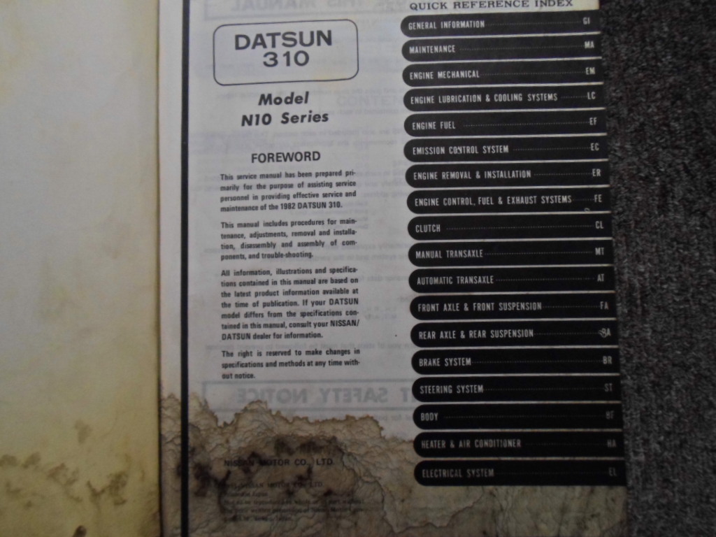 - 1982 Datsun Nissan 310 Service Repair Shop Manual FACTORY OEM BOOK OIL DAMAGED