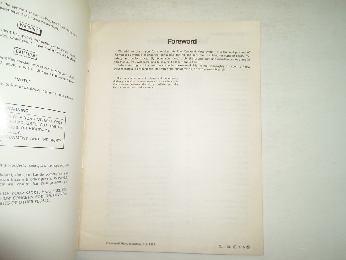 - 1982 Kawasaki KDX250 Owners Manual & Service manual FACTORY OEM BOOK 82 WORN