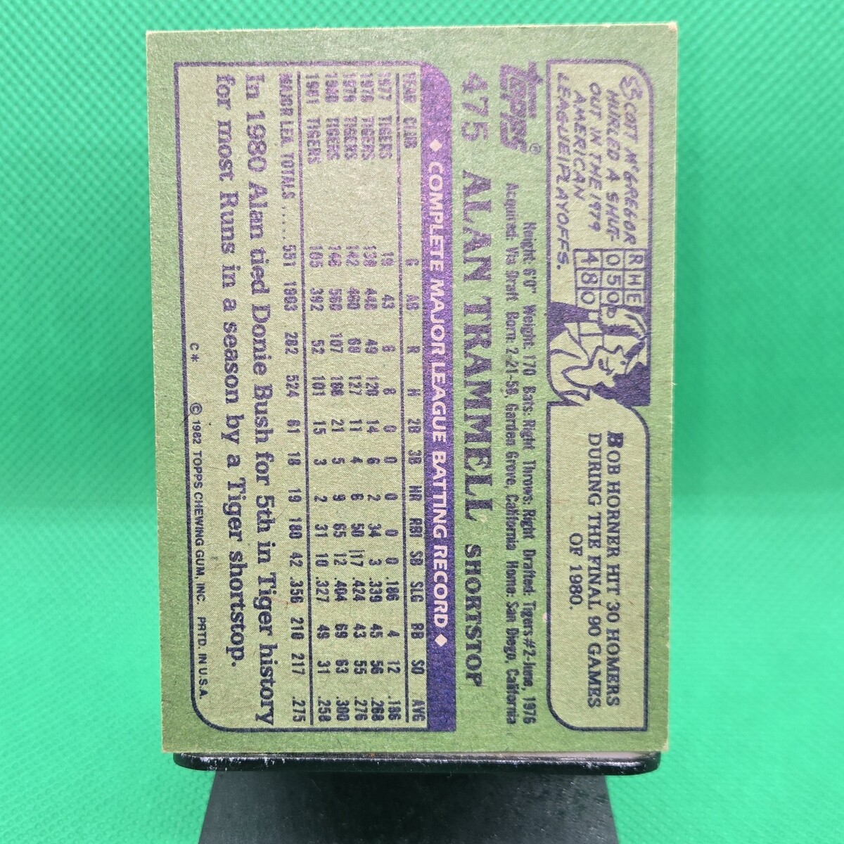The 1982 Topps Baseball Alan Trammell Card #475