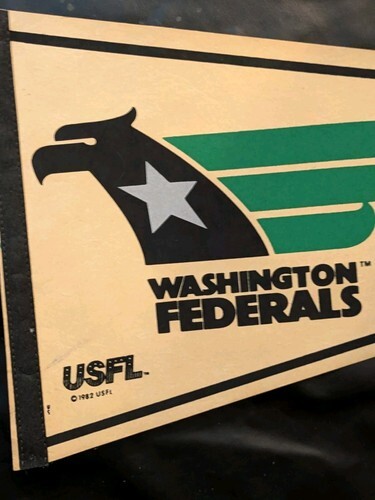 Montrez votre amour pour les souvenirs sports vintage avec ce fanion pleine grandeur 12 x 30 comportant le logo emblematique de l'aigle des Federals de Washington de l'USFL de 1982. Cette piece originale et sous licence officielle de l'histoire sports est un incontournable pour tout passionne de football. Le fanion est en tres bon etat et constitue un ajout fantastique a toute collection. Celebrez l'heritage des federaux de Washington avec ce fanion de haute qualite. Fabriquee aux Etats-Unis, cette piece vintage est une trouvaille rare et est parfaite pour etre exposee dans votre maison ou votre bureau. Ajoutez-le a votre collection de souvenirs sports aujourd'hui et montrez votre amour pour l'histoire du football.
