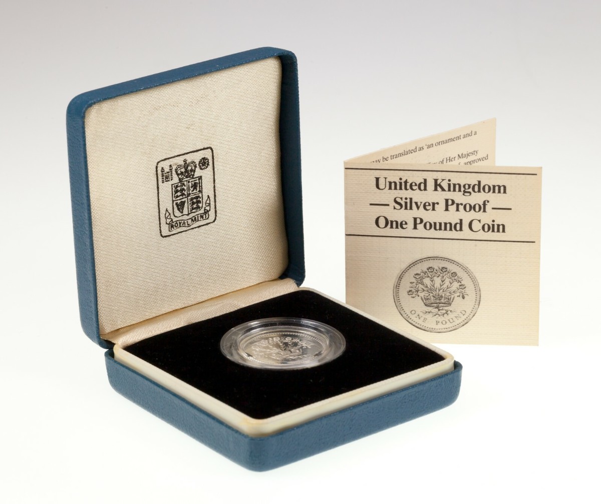 - 1984-1987 Great Britain 1£ Coins in Silver Proof or Piedfort Coin Lot of 4