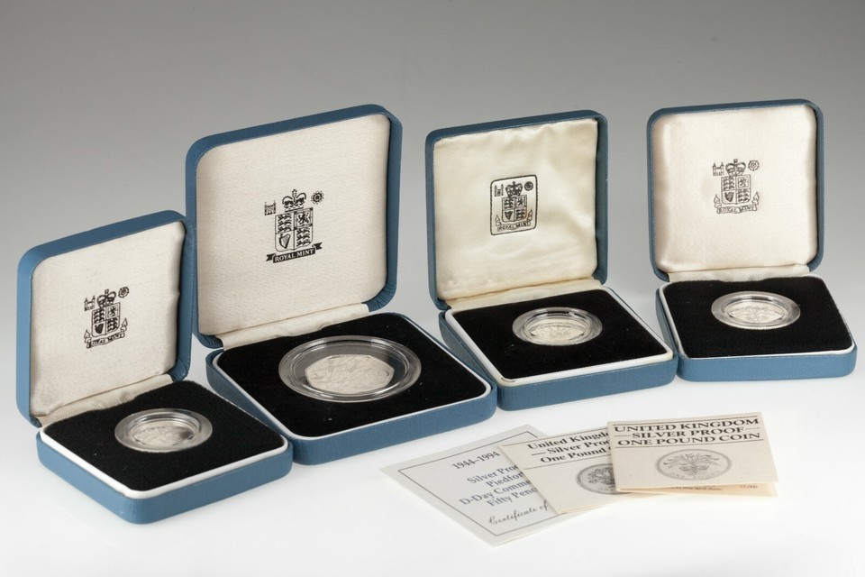 1984-1994 Grande-Bretagne 50 pence et une livre Silver Proof Piedfort Coin Lot de 4