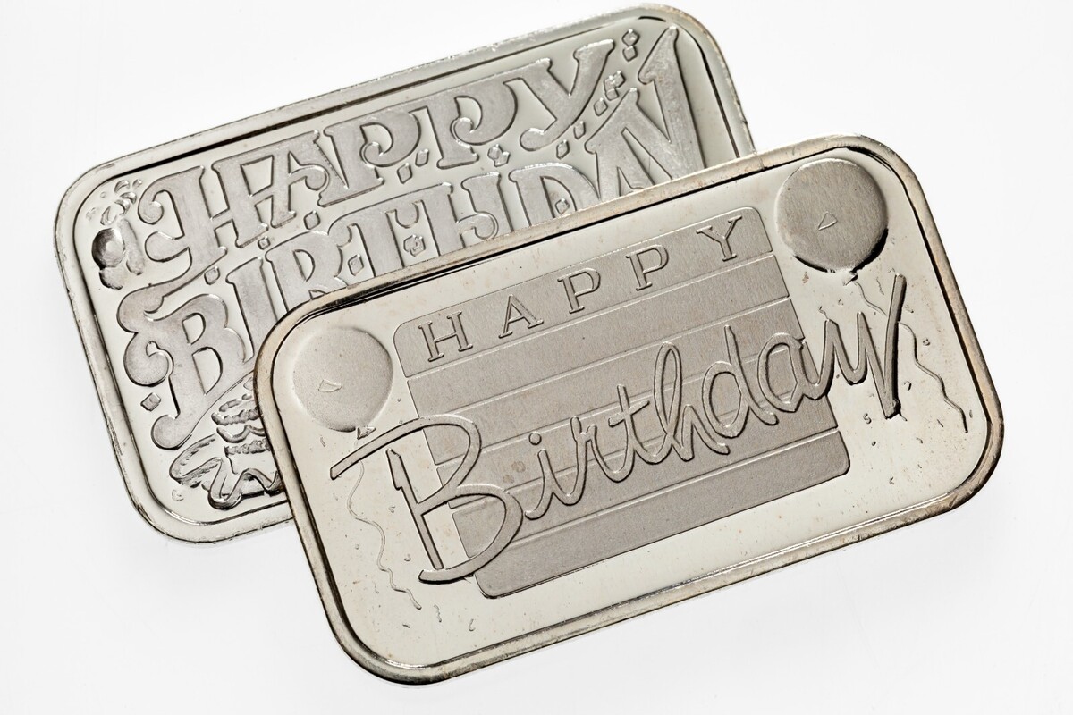 - 1984, 1995 Buon Compleanno Collezione Di 2 Lingotti D'Argento Da 1 Oz