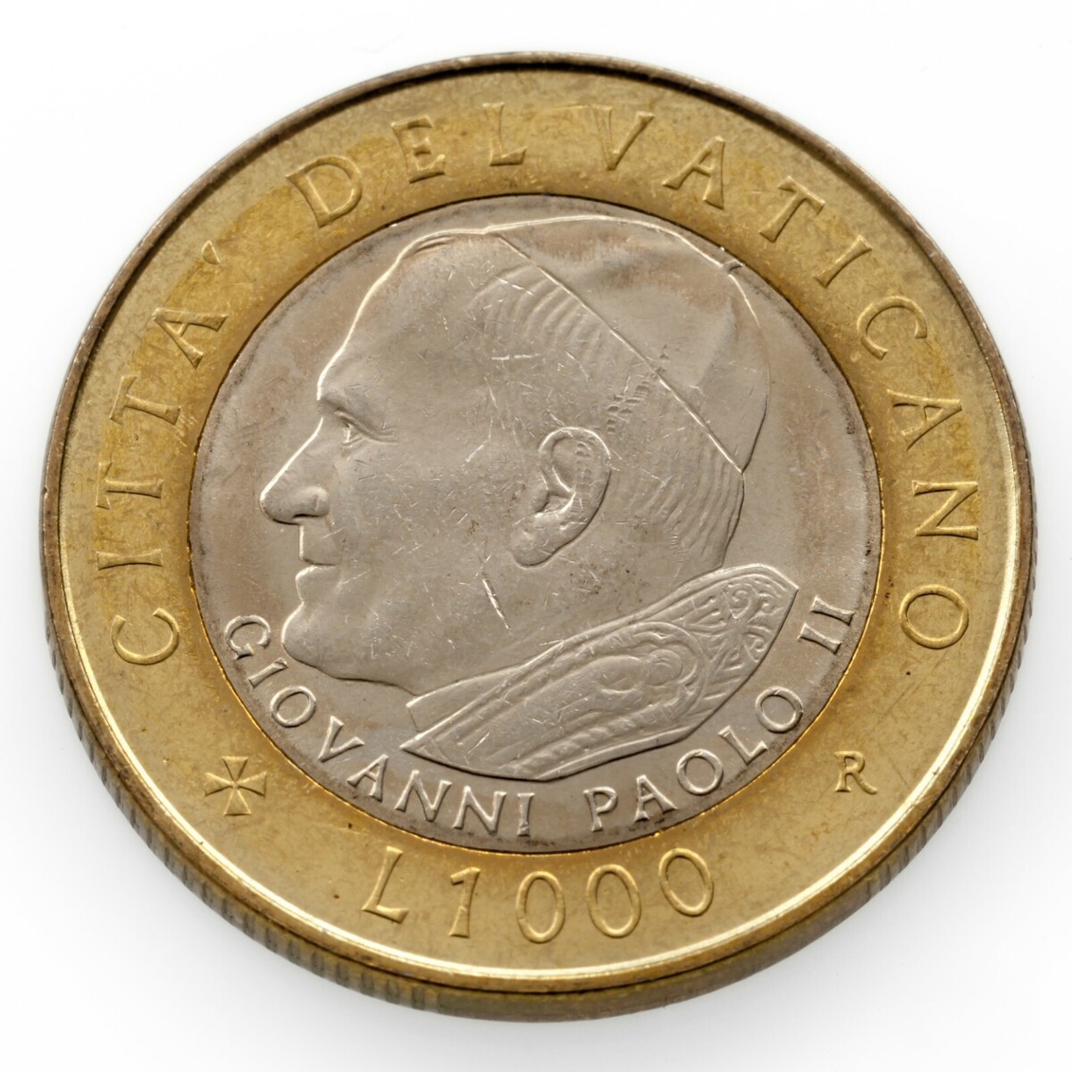 2001 Vatican City 1000 Lire, Reverse: Papa Giovanni Paolo II, KM 337