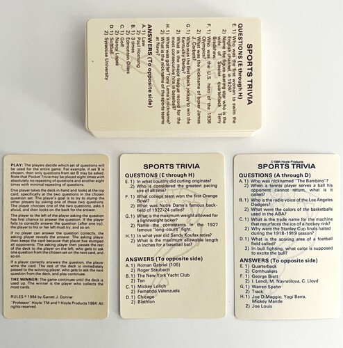 - 1984 Hoyle Pocket Trivia Sports Series 5 Cards 54 Pcs Vintage Subaru AMC Promo