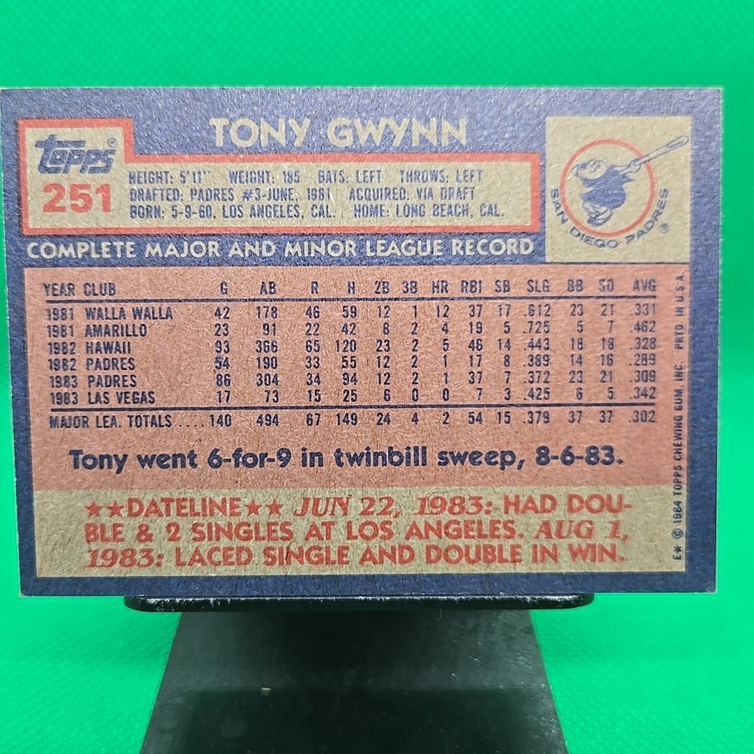 - 1984 Topps #251 Tony Gwynn Card San Diego Padres