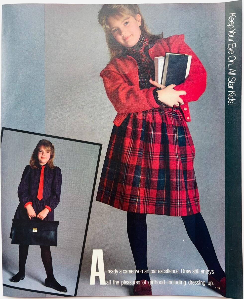 - 1985 Drew Barrymore Child Movie Star Harpers Bazaar Magazine Page Vintage DWX10C