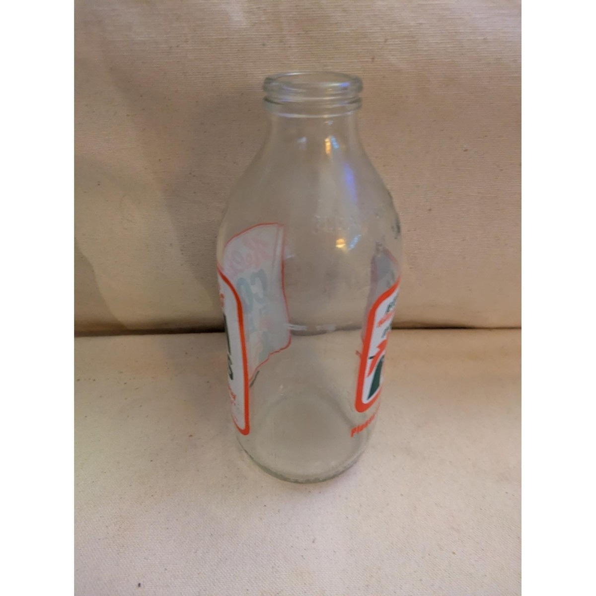 Revivez la nostalgie du petit-dejeuner avec cette charmante bouteille de lait en verre Kellogg's Corn Flakes vintage. Cette bouteille de collection presente la marque emblematique Kellogg's Corn Flakes avec un joyeux motif de coq et le slogan memorable « The Original and Best ». Le verso comporte le message important « S'il n'est pas indique Kellogg's sur le paquet, ce n'est pas Kellogg's dans le paquet » et un rappel « Veuillez rincer et retourner. » Cette bouteille est une piece fantastique pour les collectionneurs ou un delicieux accent decoratif pour votre cuisine ou votre coin petit-dejeuner. Parfait pour une presentation de cuisine retro ou comme cadeau unique pour un amateur de cereales.