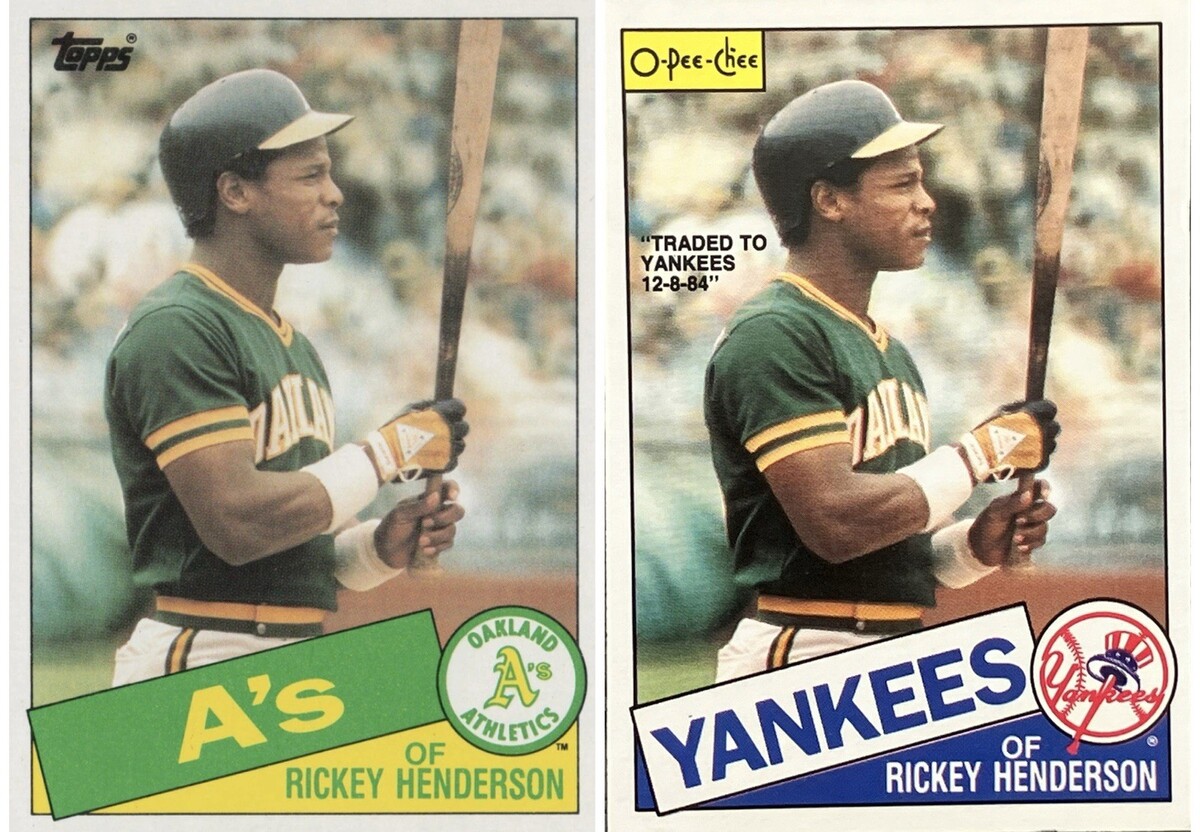 See pictures. This is the OPC variation of the 1985 Rickey Henderson card. It lists the team as the Yankees and notes the trade date of 12-8-84. The production run on OPC is believed to be about 10% of the run of 1985 Topps due to the population difference between the US and Canada.