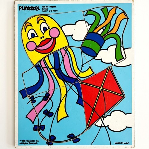 - 1988 Playskool Puzzle Vintage Frame Tray Kites 186-17 5 Pcs GstRm