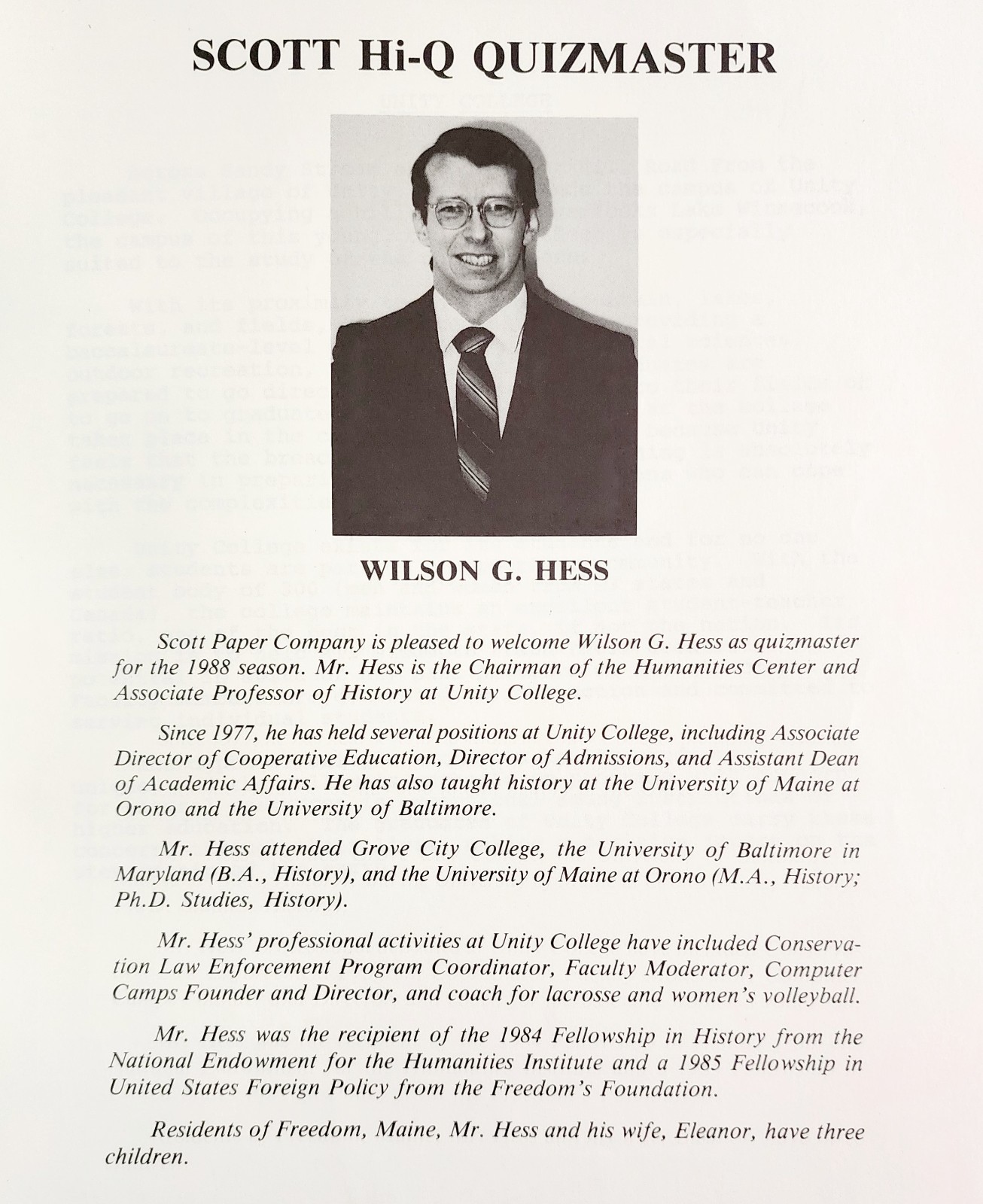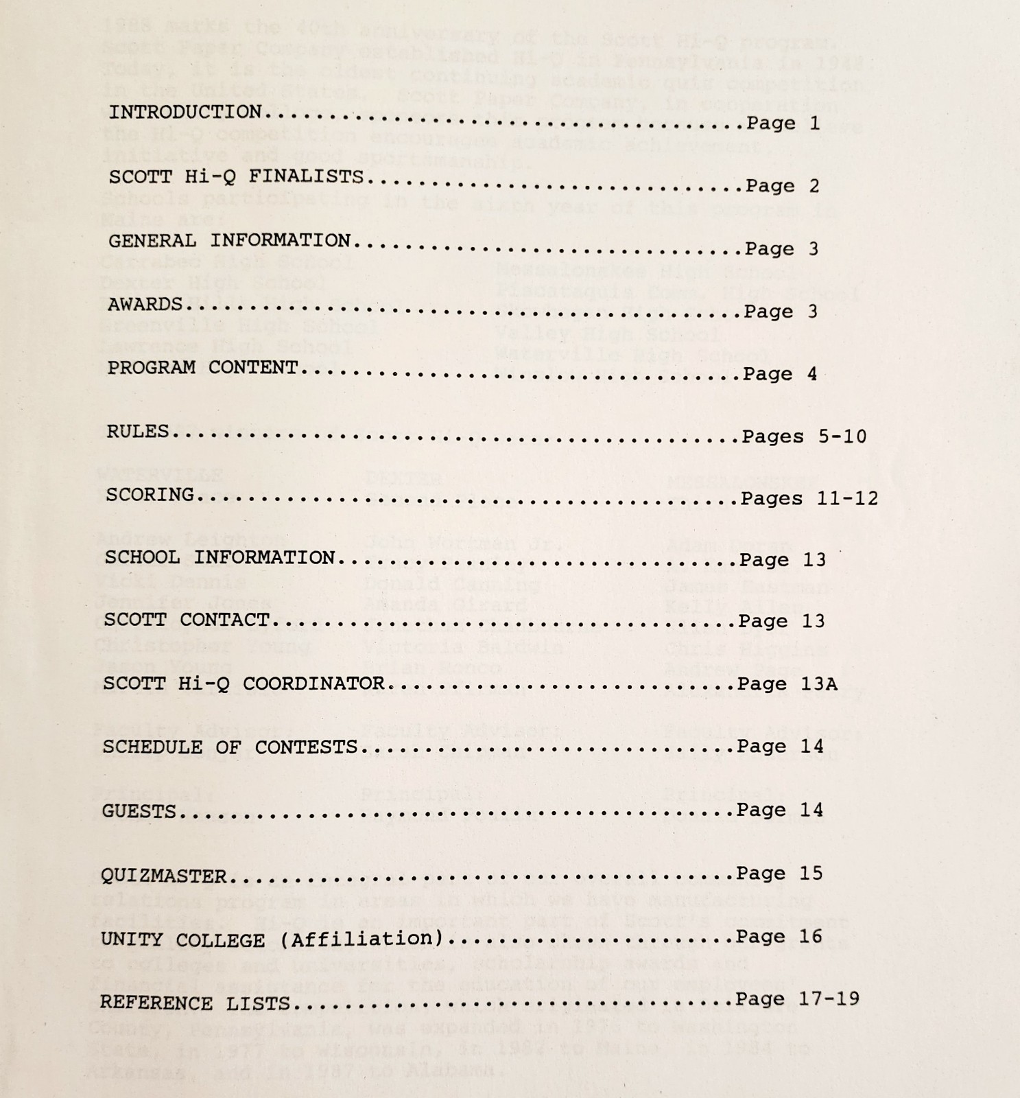 - 1988 Scott Paper Company Hi-Q Quiz Competition Program 40th Anniversary F15R
