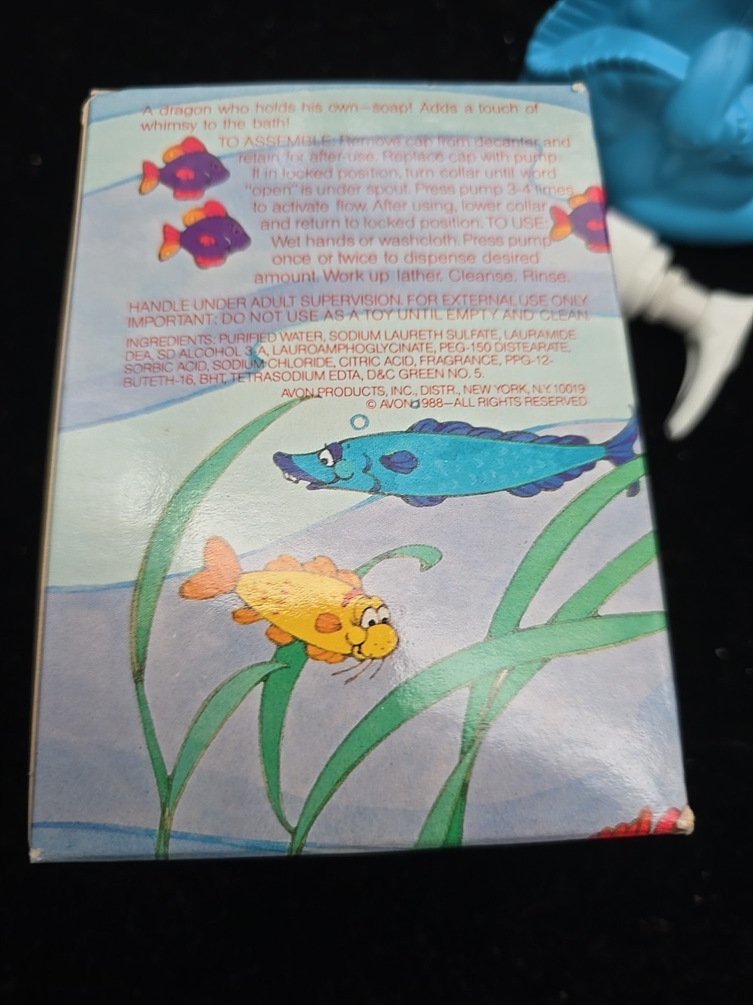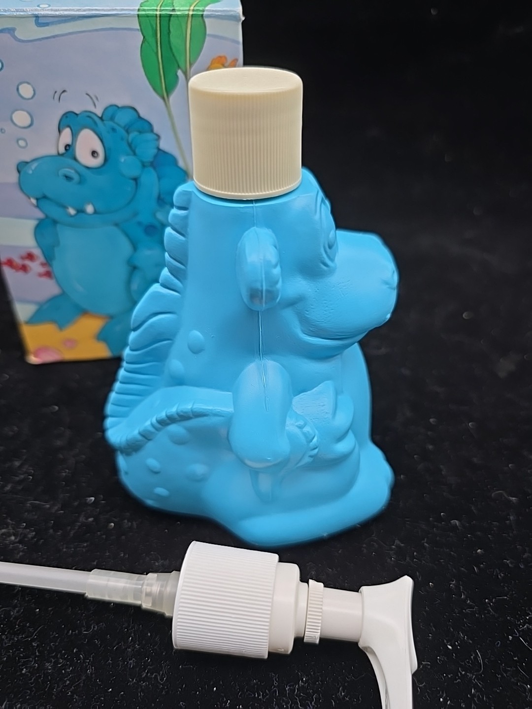 7.5 ounce cute dragon soap dispenser by avon. The character's name was Sundsy Sinclair and he came out in 1988.