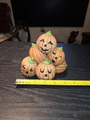 - 1988 Vintage Halloween Ceramic Jack-O-Lantern Stack Pumpkins