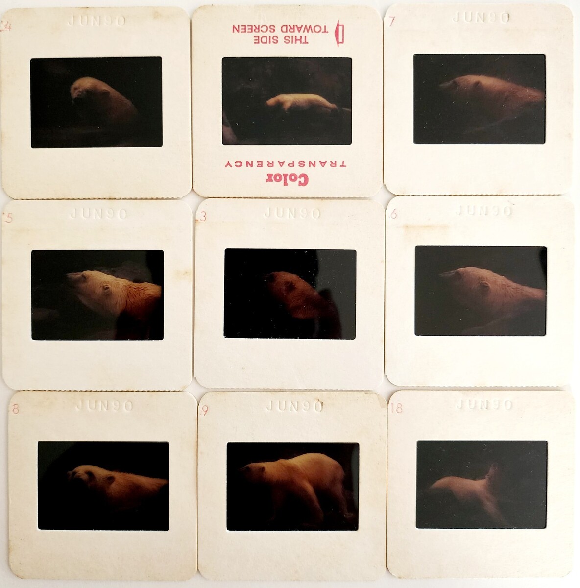 - 1990 Polar Bear Lot Of 9 Pcs 35mm Slides Zoo Bears Nature Animals E50H