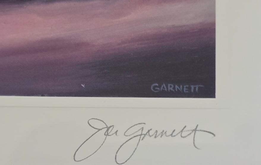 The product is a vintage poster art print from 1990 featuring The Doors, created by artist Joe Garrett. Titled "Full Circle," this original poster is a 1st edition and features a unique design that captures the essence of the iconic band. Item comes with COA and registration number. Signed in the printing plate edition. Framed matted. Item is in excellent condition encased in plexiglass. Measuring 21.5" in height and 34" in width, this piece of art is a must-have for any fan of The Doors or vintage poster collectors. The poster is guaranteed with a Certificate of Authenticity, adding to its value and historical significance.