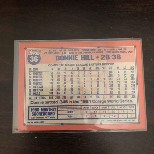 - 1991 Topps 40 Years Of Baseball Donnie Hill #36 California Angels