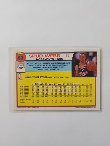 - 1992 Spud Webb Sacramento Kings #63 Topps NBA Sports Card Ungraded Vtg E86RP6