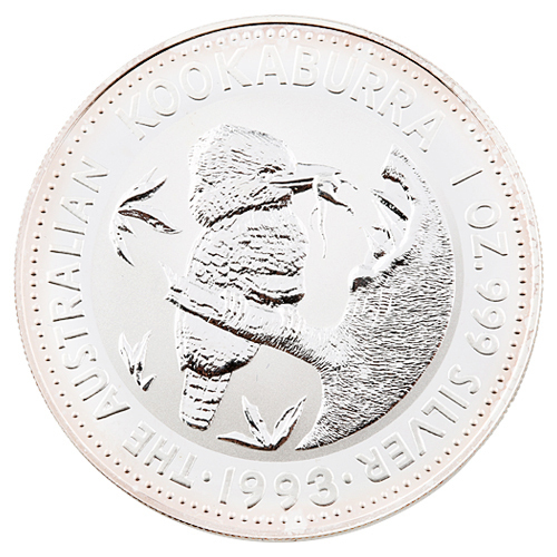 Vorderseite Inschrift: "Der australische Kookaburra 1 Unzen. 999 Silver 1993 "