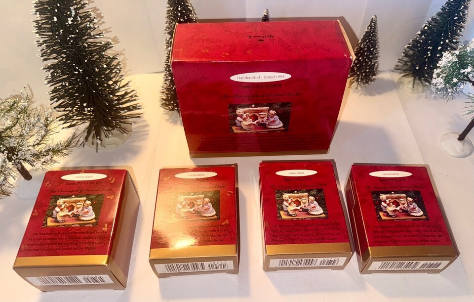 The ornaments are lovingly used and properly stored. As you can see from the pictures all four ornaments and fireplace are in excellent condition and the fireplace functions as intended (batteries not included). Packaging does show minor signs of ware consistent with age and the inner packaging has been replaced with bubble wrap.