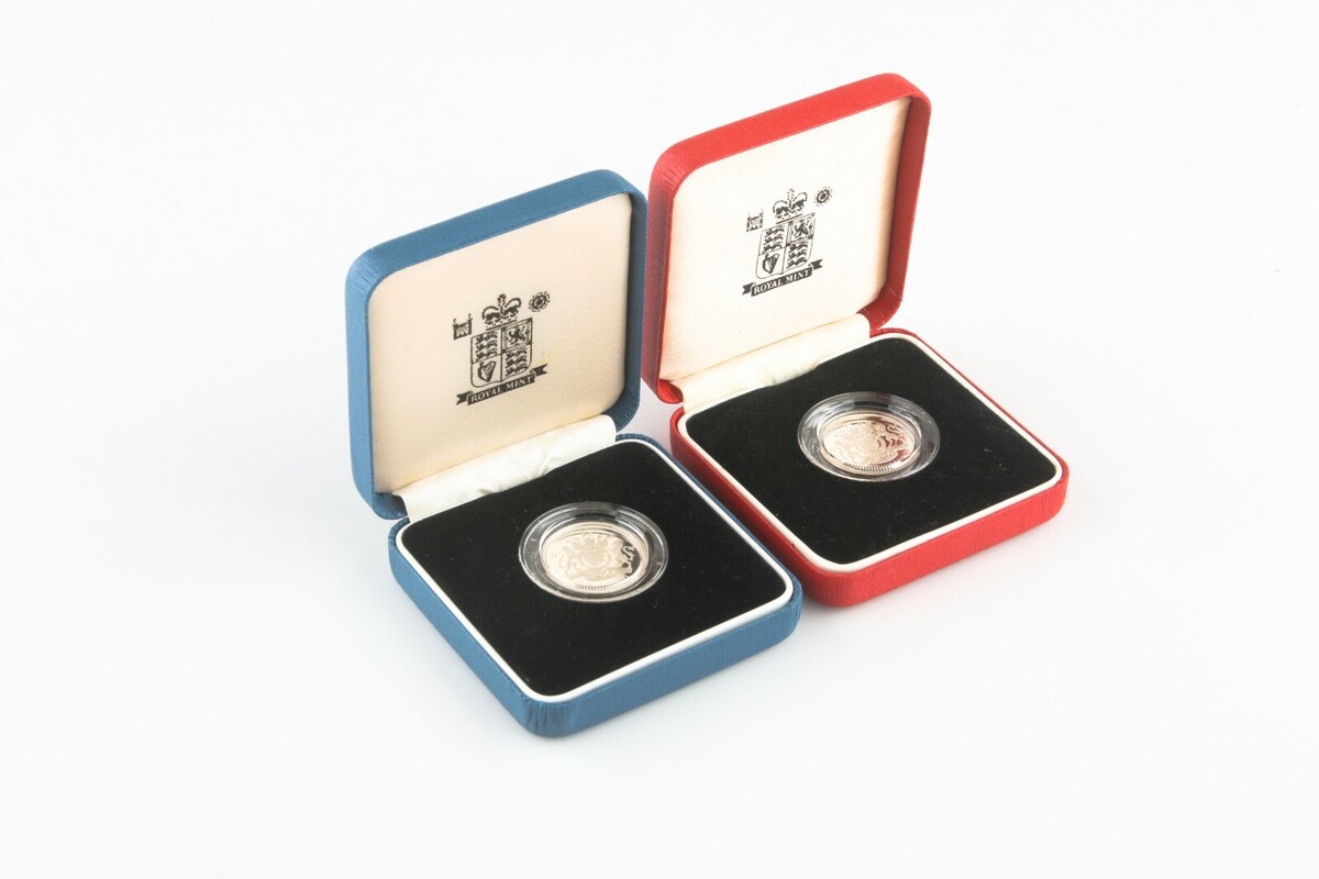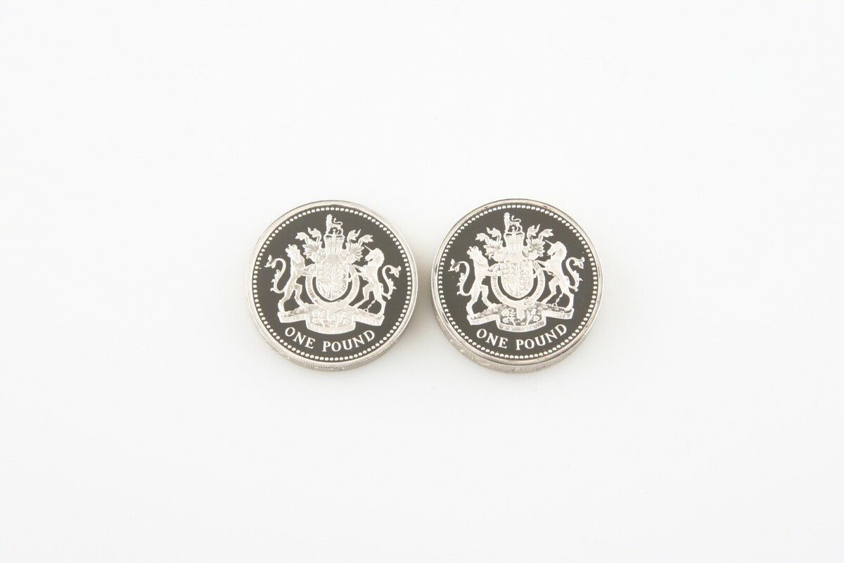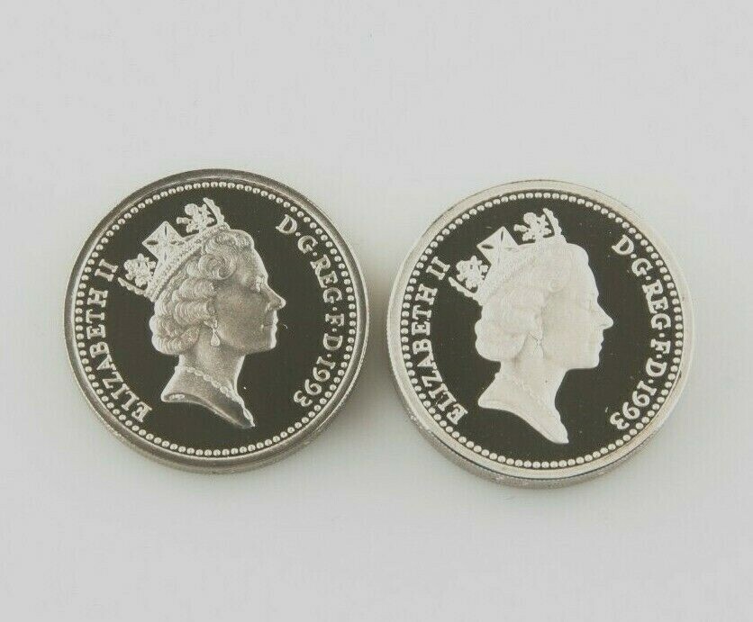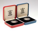 - 1993 Great Britain One Pound Two Coin Set In Silver Proof & Piedfort w/ Cases