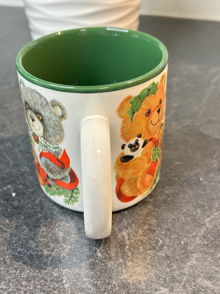 Vintage 1993 Beary Christmas Kathy Rogers Potpourri Designs Christmas Teddy Bear Tea Cup Coffee Mug