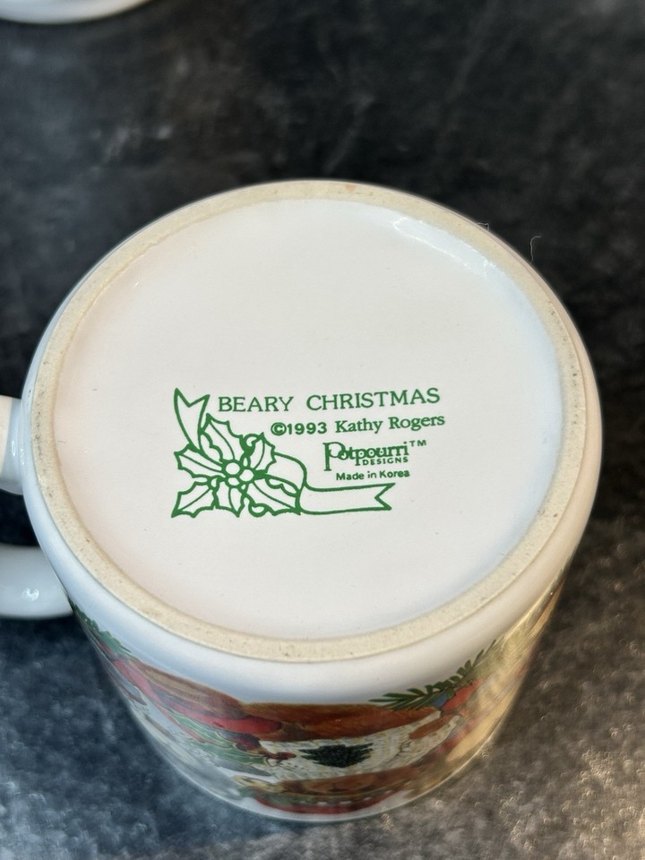 - 1993 Potpourri Designs By Kathy Rogers Beary Teddy Bear Christmas Coffee Mug