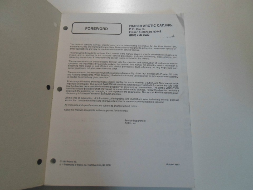 1994 ARCTIC CAT PROWLER/PANTERA SERVICE REPAIR SHOP MANUAL WORN