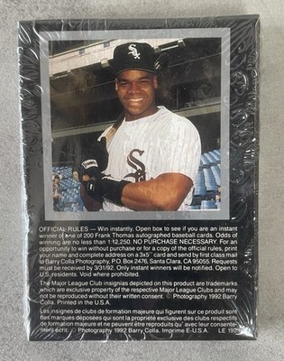 The 1992 Topps Barry Colla Collection 10 Card Frank Thomas Set is a sought-after, factory-sealed sports trading card set featuring baseball player Frank Thomas.