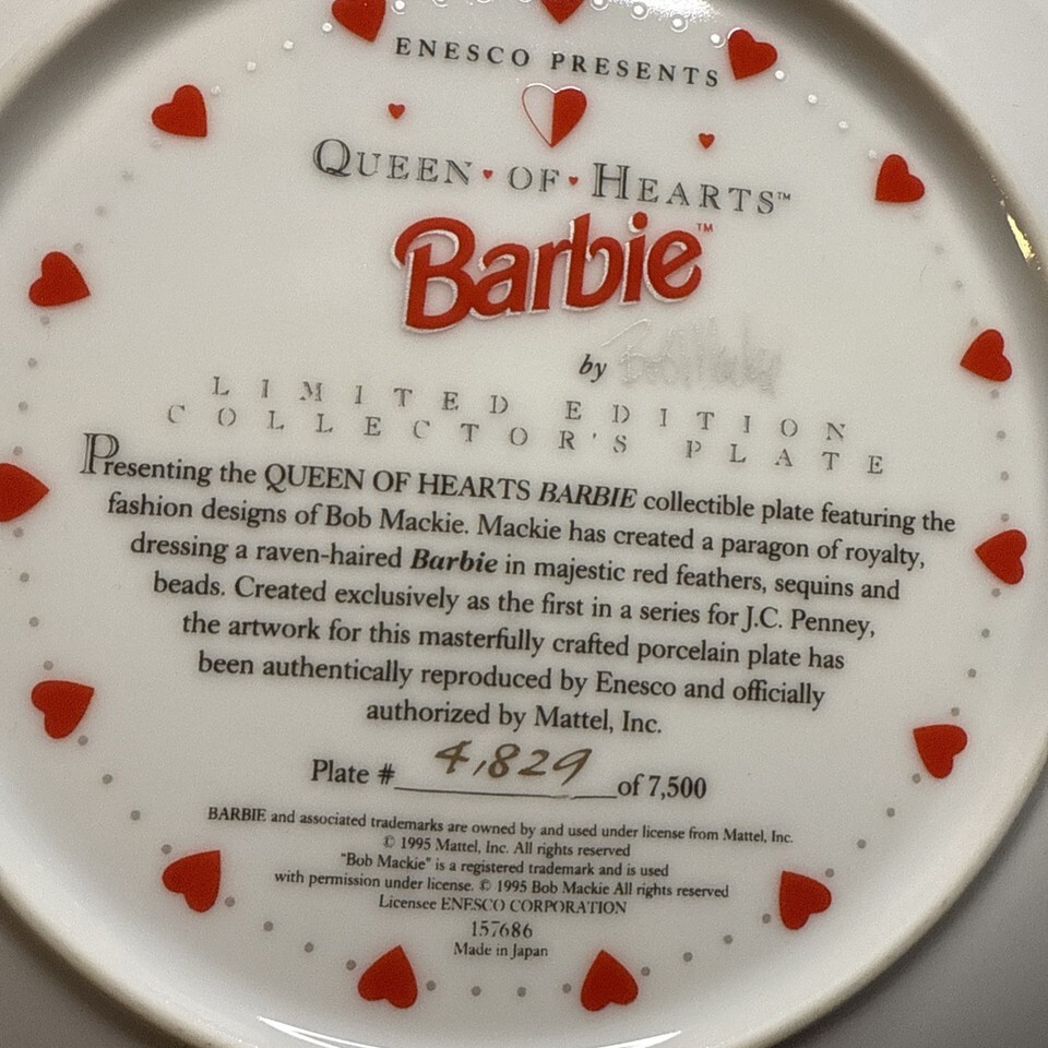 - 1995 Bob Mackie Barbie Queen Of Hearts Limited Edition Plate /7500 C.O.A