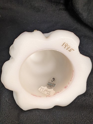 - 1995 Fenton Noël Arbre 6.5” Blanc Lait Verre Doré Oiseau Main Peint C Smith