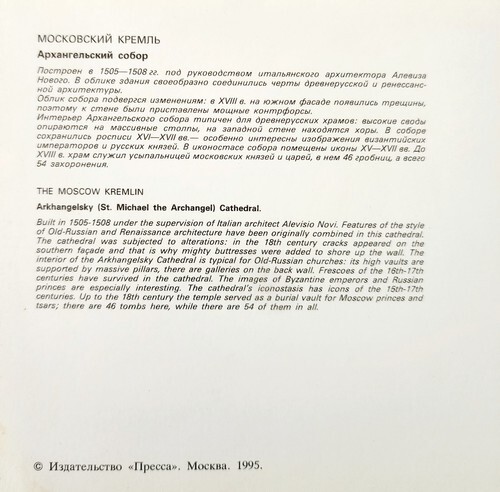 - 1995 St Michael Cathedral Moscow Kremlin Post Soviet Russian Print Card E88C