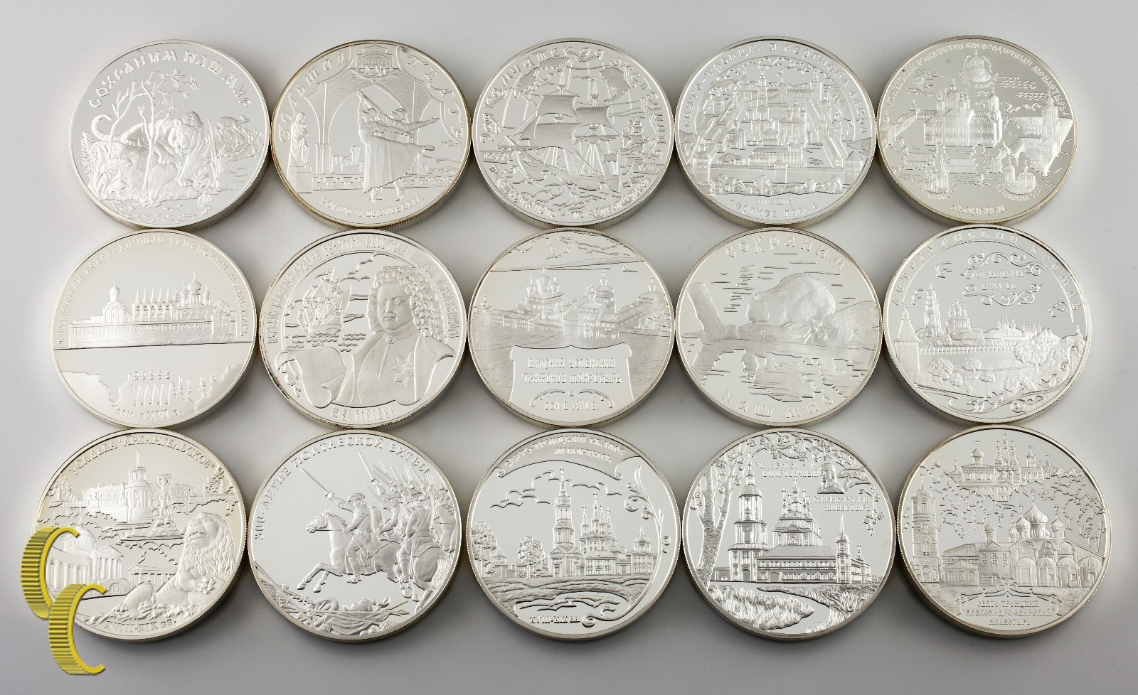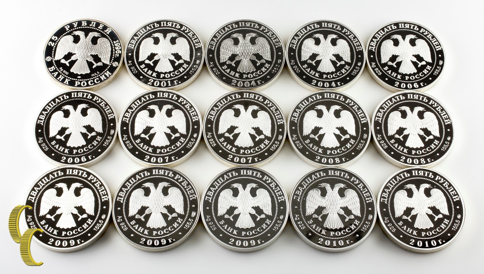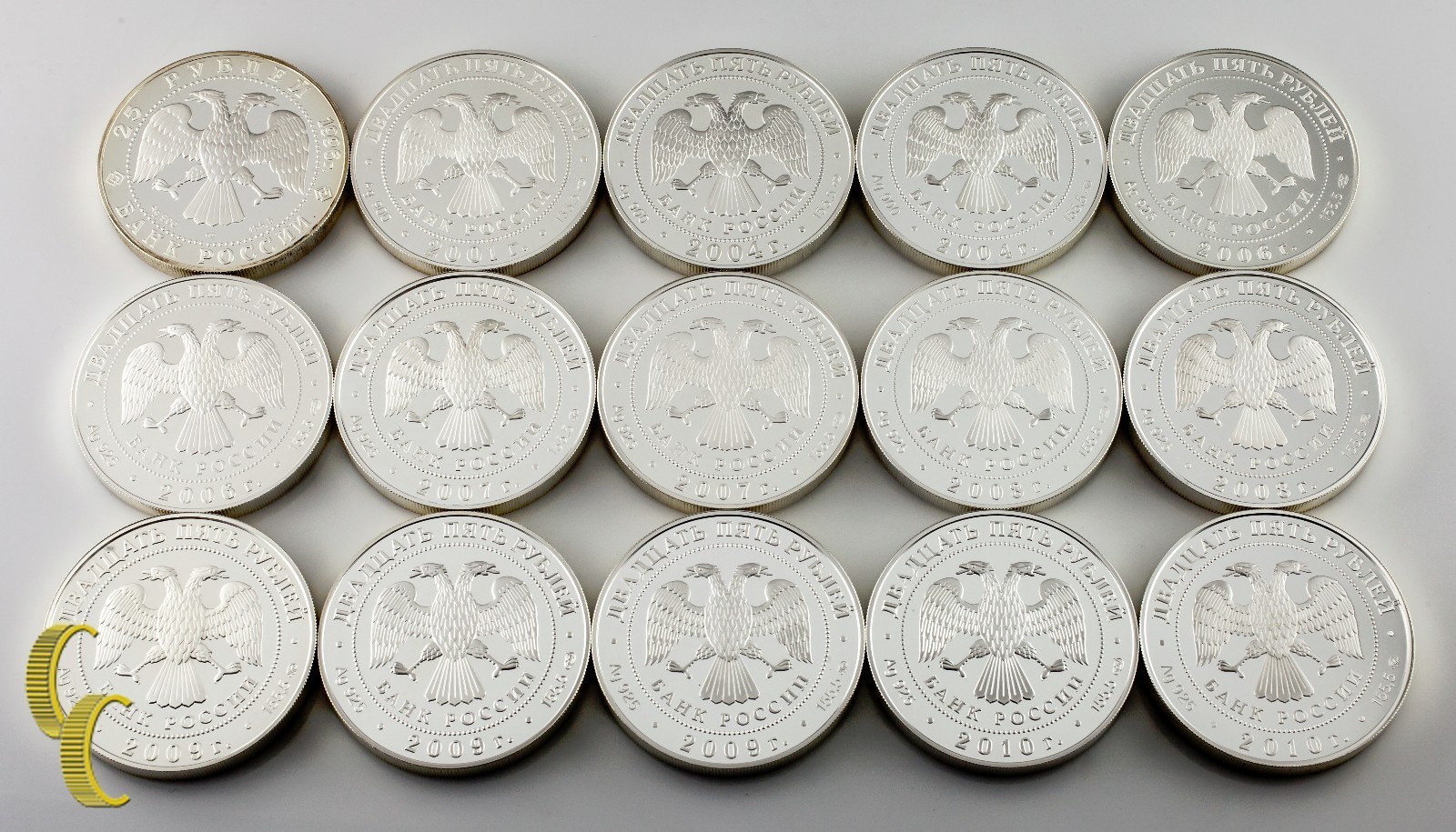 Lot von 15 5 oz. Russische 25-Rubel-Runden Sterlingsilber 1996 - 2010 Proof