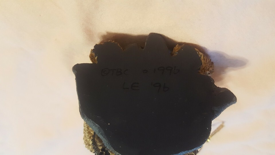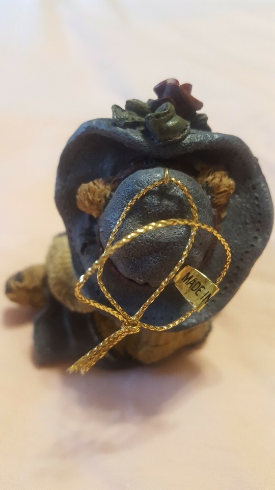 1996 Boyds Bear Figurine, Bear wearing hat with flower, sweater and a skirt. Very Good Condition.
