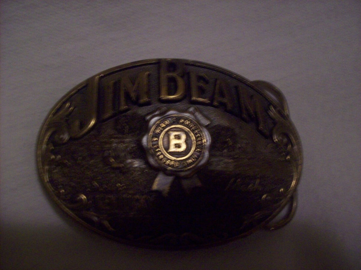 - 1996 LTD EDITION JIM BEAM KENTUCKY WHISKEY WESTERN BRASS BELT BUCKLE