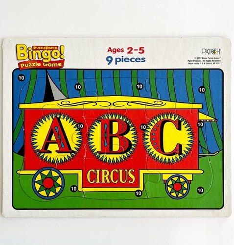 - 1997 Bingo Patch Circus Puzzle Train Car ABC Vintage Frame Tray 9 Pcs GstRm