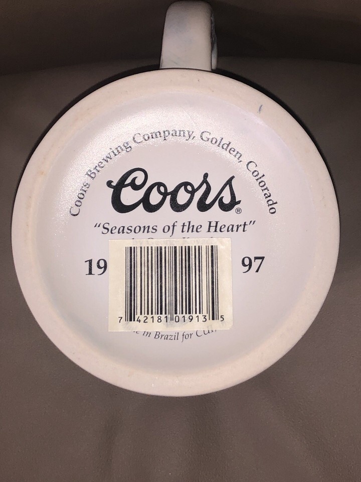 The 1997 Coors "Seasons Of The Heart Beer Stein Colorado Mug is a vintage collectible featuring a festive Christmas theme. Made in Brazil, this mug showcases the Coors brand and is a unique piece of breweriana memorabilia. This numbered mug is a special addition to any beer enthusiast's collection or a unique gift for a fan of vintage beer steins.