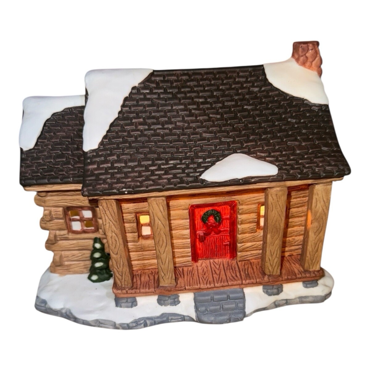 - 1997 St. Nicholas Square Log Cabin Christmas Village Building Rare Vintage