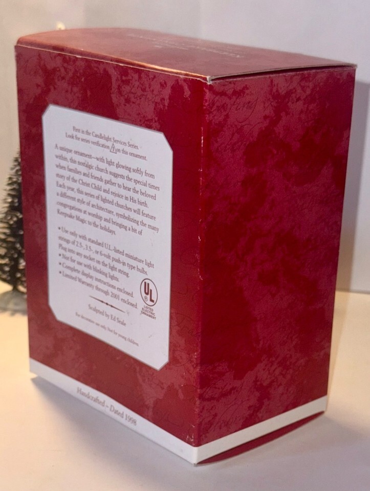 1998 Magic Hallmark Keepsake Ornament, The Stone Church is the inaugural issue for the Candlelight Services Series. This beautiful vintage ornament glows by plugging the light connector into your string of lights. The ornament is in excellent and working condition. The packaging does show wear consistent with age, but only light denting of outer packaging. Internal packaging is original.