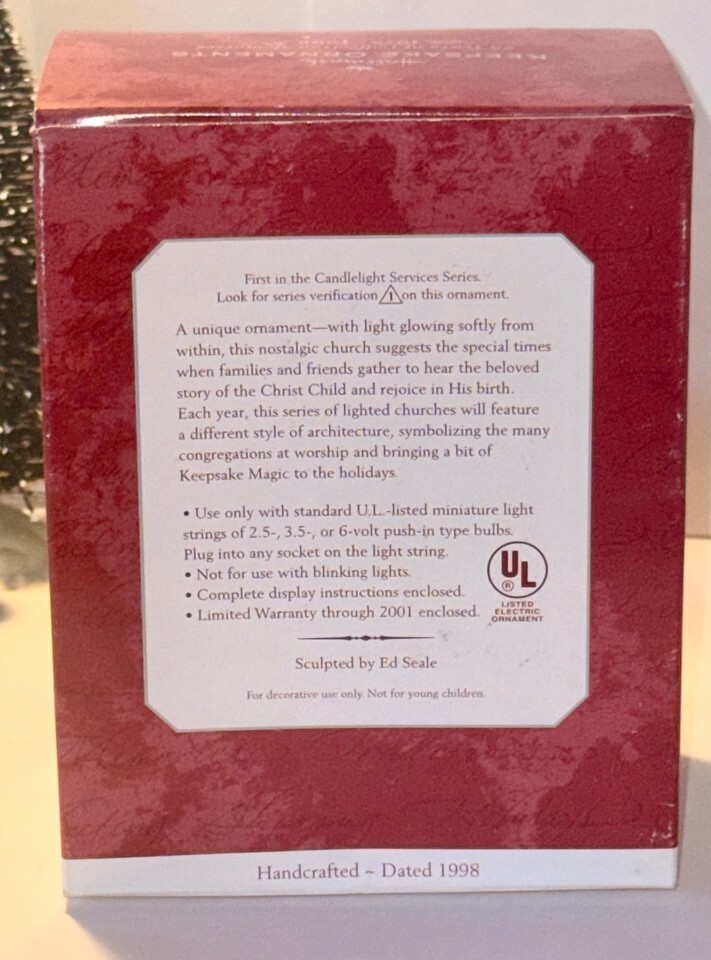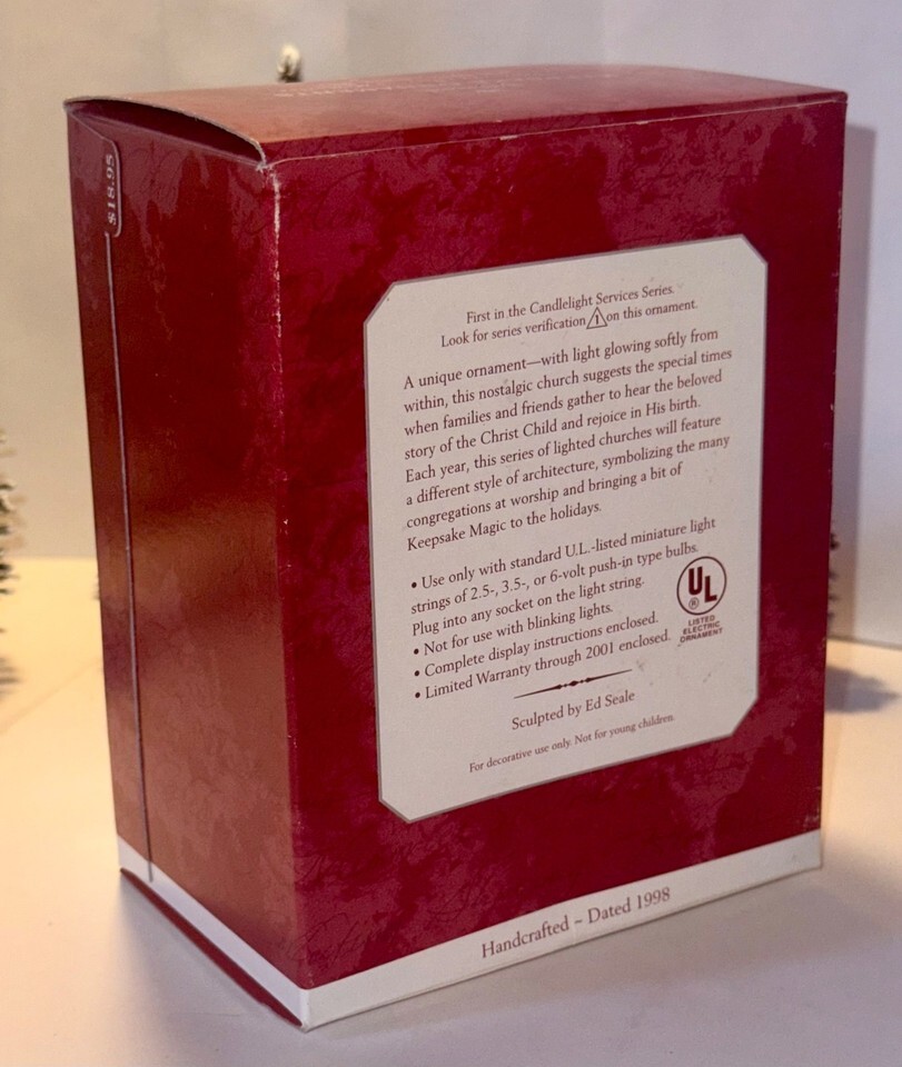 - 1998 The Stone Church Candlelight Service Hallmark Keepsake Magic Ornament 1stED