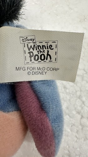 This adorable plush toy features Eeyore, a lovable character from the Winnie the Pooh Friends franchise. It was originally released as a clip-on key chain for McDonald's Happy Meals in 1999, making it a rare and sought-after collectible item. The toy is made with high-quality materials and has been well-preserved over the years, ensuring that it will remain a cherished possession for years to come.