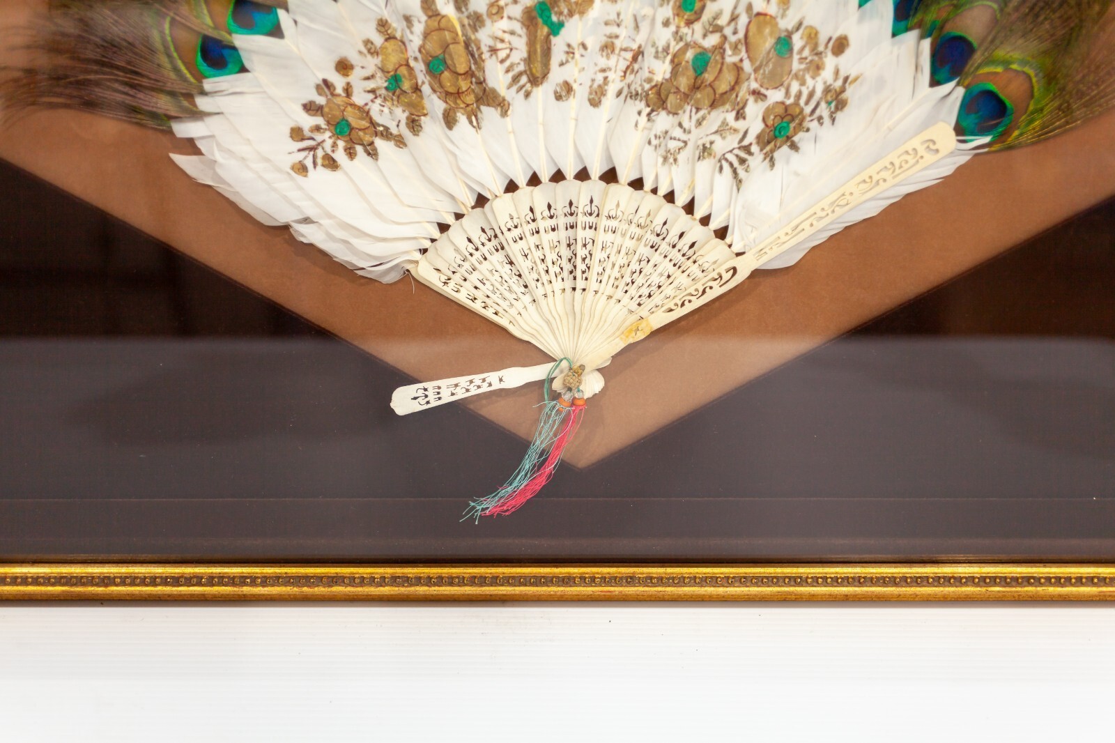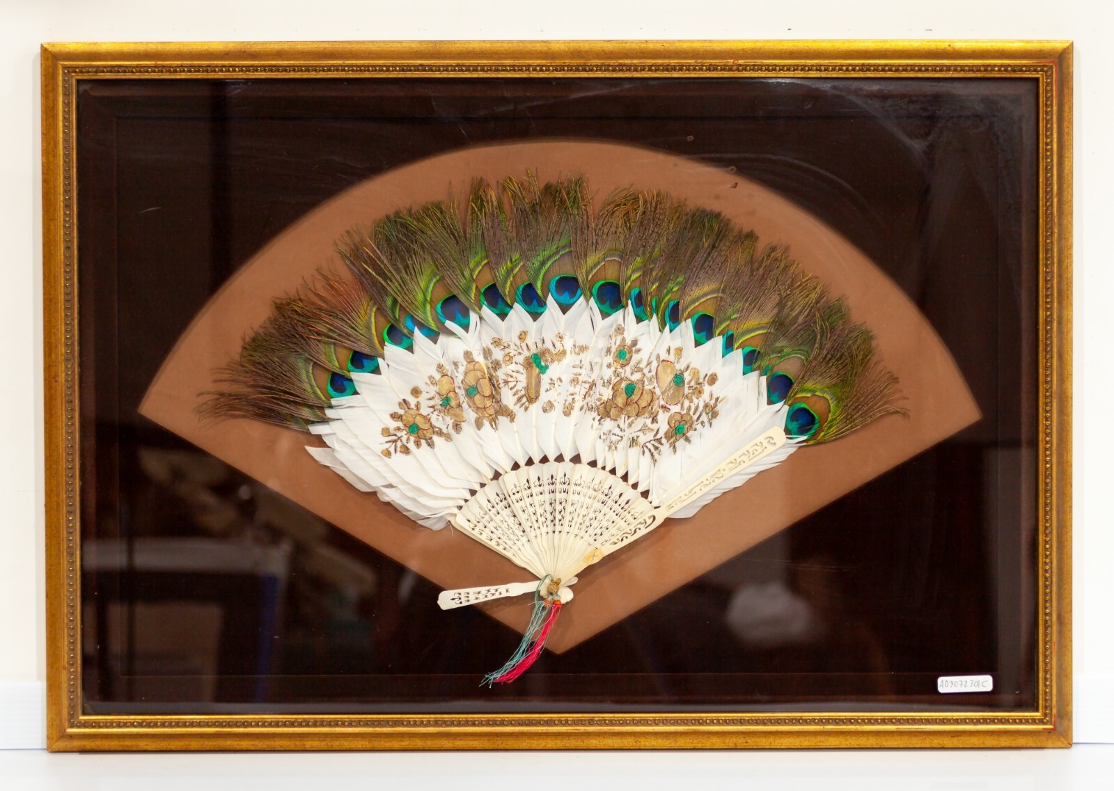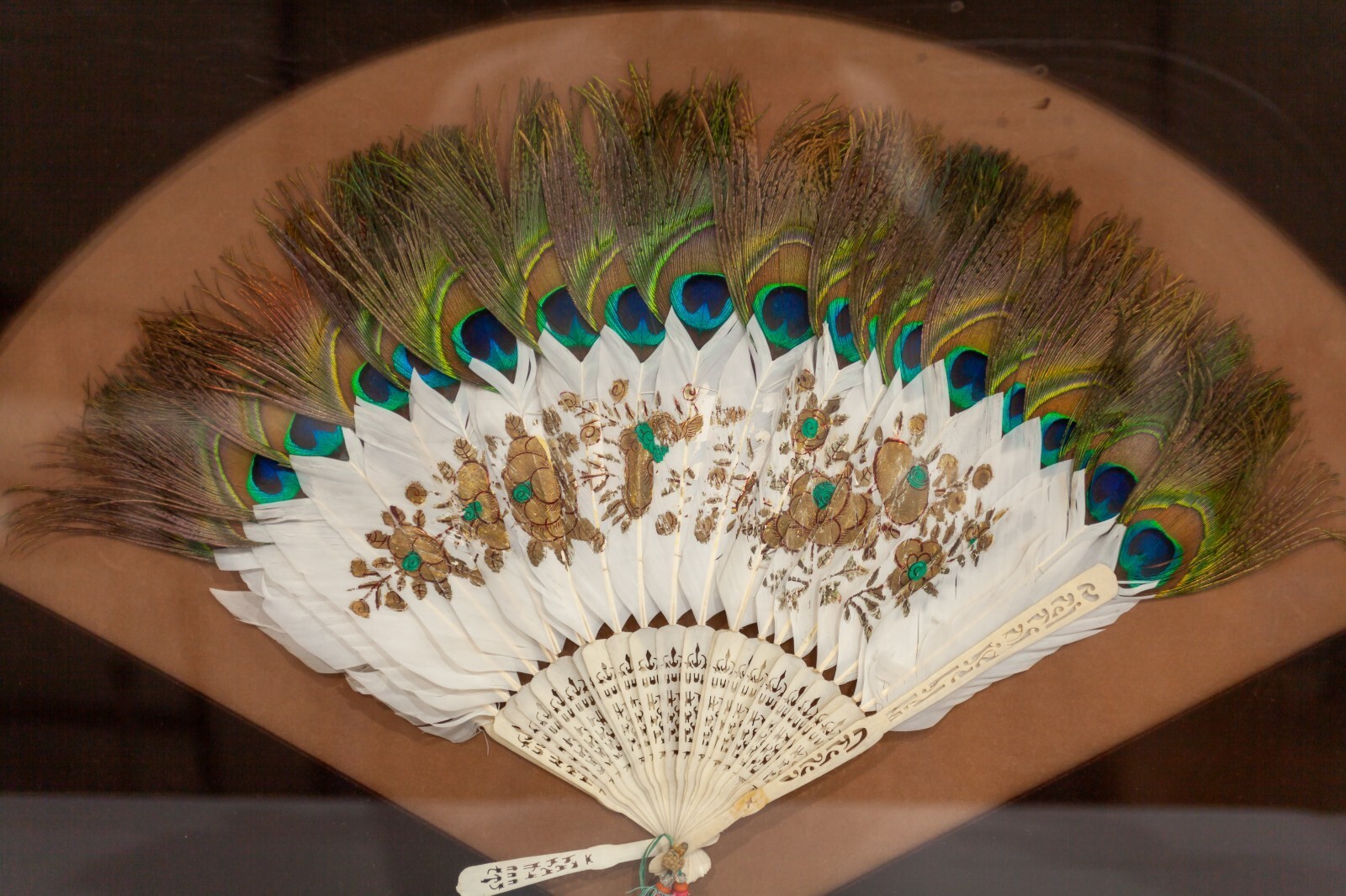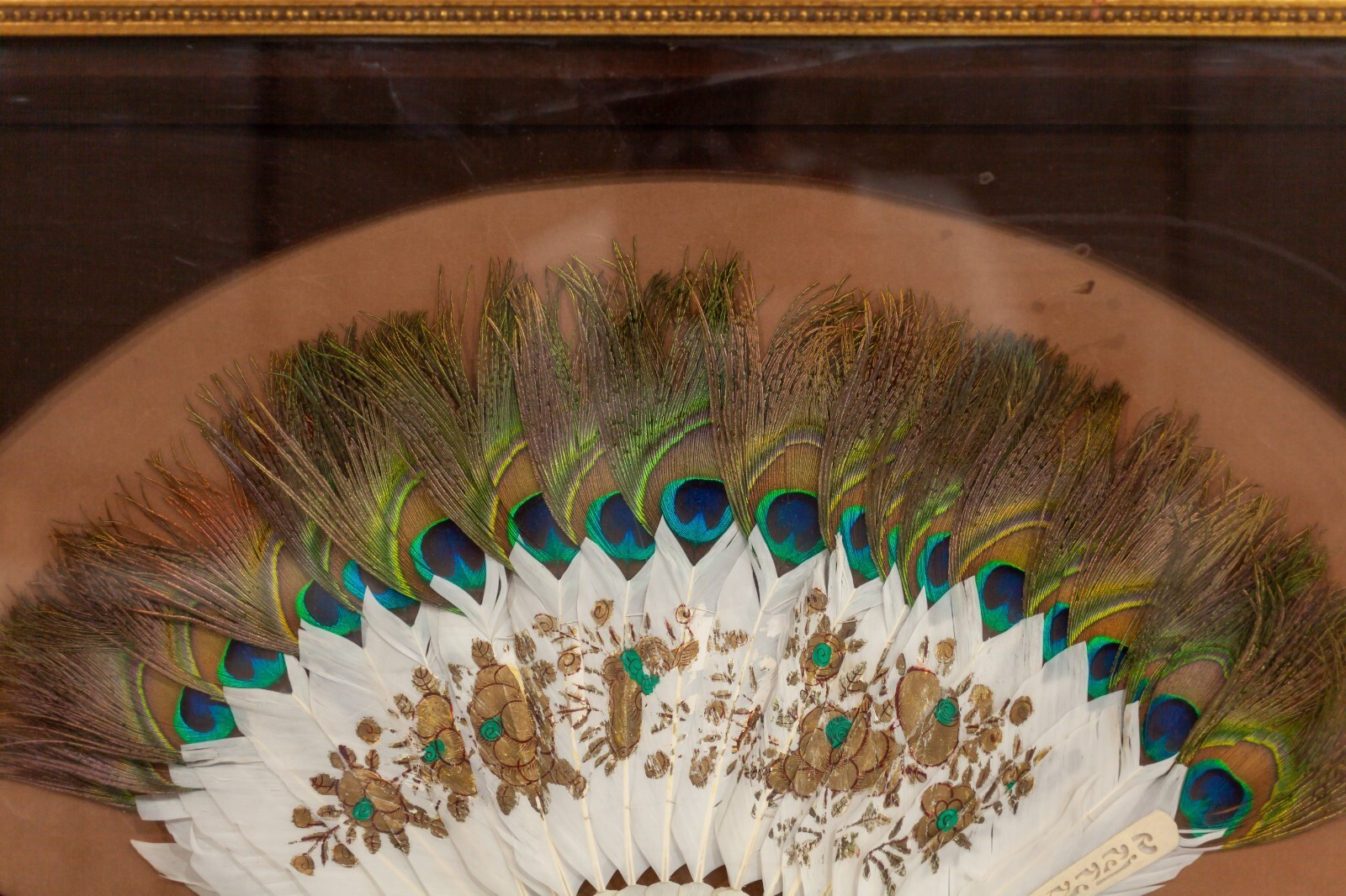 - 19th Century Qing Dynasty Peacock Fan in Frame Gorgeous